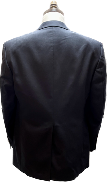 Description : This 2 button Botany 500 navy blazer was worn one time. Pockets are still sewn closed. Perfect for school or professional uniforms. Made in Canada.