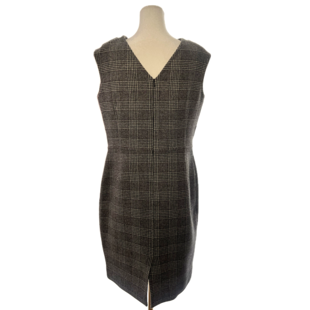 Description : This Christian Dior sleeveless black and cream plaid dress exudes timeless elegance with a modern edge. Crafted from high-quality fabric, the dress features a classic plaid pattern in contrasting black and white tones, offering a refined yet bold aesthetic. The sleeveless sheath silhouette is tailored to flatter the figure, creating a balanced and feminine shape. Designed with meticulous attention to detail, it includes fine stitching and a concealed back zipper for a seamless finish. Perfect for both daytime sophistication and evening chic, this Dior dress captures the essence of effortless Parisian style. This dress has no size tags. Estimated to fit size 10 Petite.