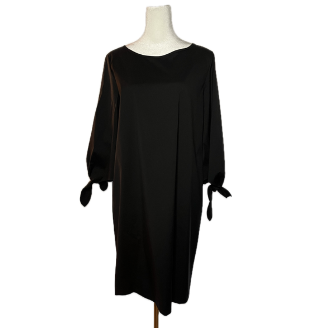 Description : Effortless sophistication in a timeless silhouette. This black shift dress by Lafayette 148 features 3/4 length sleeves with tie detail, a flattering straight cut, and a soft yet structured cotton blend fabric. Minimalist and versatile—perfect for work, dinner, or dressing up with accessories.