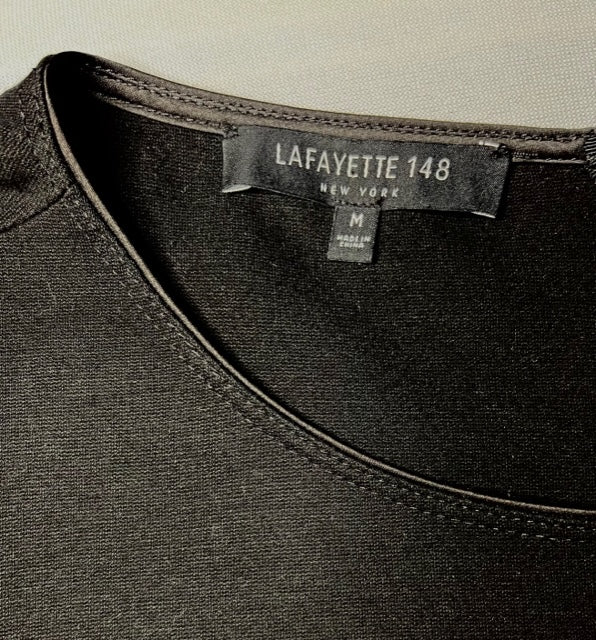 Description : Lafayette 148 black shift dress. Long sleeve with bateau neckline. Concealed zip closure at back. Ponte knit stretch fabric. Tags removed and worn 2 times.