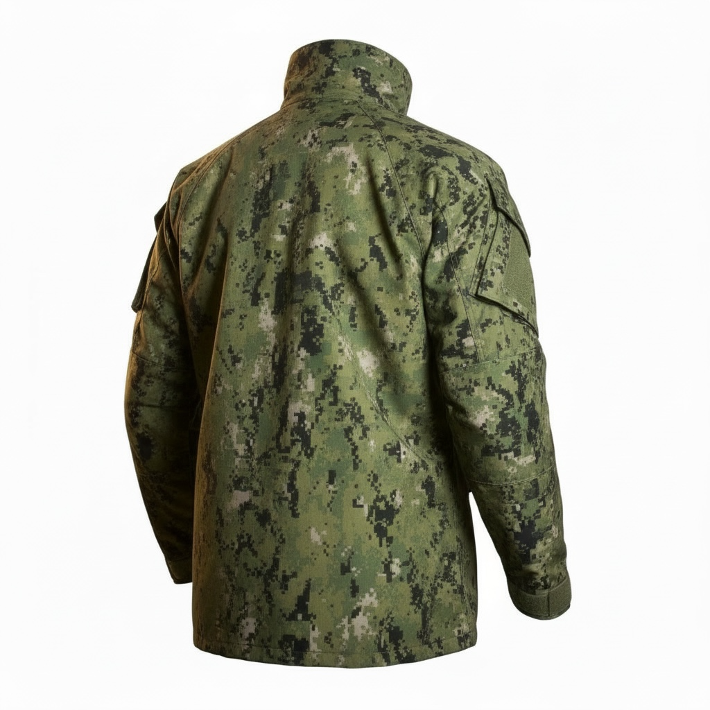 Description : The U.S. Navy NWU Type III Parka is a durable, weather-resistant outer garment designed for use in operational environments. Constructed from a lightweight, yet rugged, ripstop nylon material in the NWU Type III digital woodland camouflage pattern, the parka provides protection against wind and water while remaining breathable for comfort during extended wear. It features a full-length front zipper with a storm flap, hook-and-loop adjustable cuffs, and a high collar with a concealed hood for added weather protection. The parka includes loop fields on the chest and sleeves for name tapes, rank insignia, and qualification badges, as well as shoulder epaulets and multiple pockets for utility and storage. Designed to be worn with a removable fleece liner for added insulation, the NWU III Parka is a versatile component of the Navy Working Uniform, suitable for both shore-based and expeditionary environments. Parkas are in Very Good condition and are previously worn unless marked Brand New With Tags (NWT) or Brand New With Out Tags,