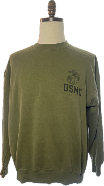 Description : Green sweatshirt with USMC EGA logo. Sweatshirts are in Very Good condition and are previously worn unless marked Brand New With Tags (NWT) or Brand New With Out Tags (NWOT). Made in the USA