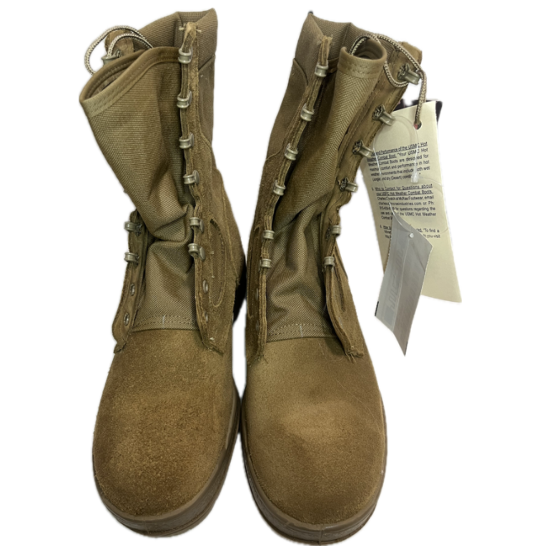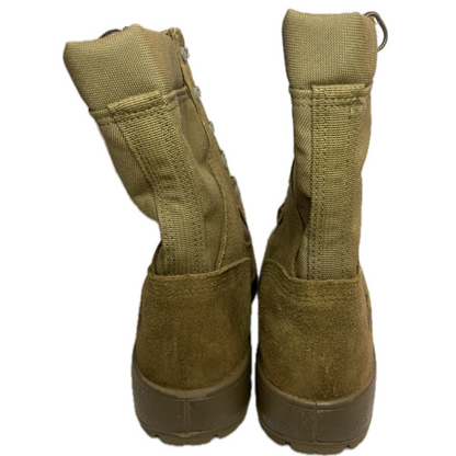 Description : Brand New In Box - Made in the USA and designed for US Military operators in hot climates. Features include an oil, acid, and slip resistant rubber Vibram Sierra outsole, padded collar, full grain coyote suede and 1000 denier Cordura upper, and nylon coated speedhooks & eyelet lacing system. These boots are in Pristine condition and have not been worn. For more selections of boots, see our other listings under Military Footwear.