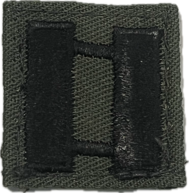 Description : U.S. Army Sew On Embroidered Collar Rank - Captain. Black embroidery on green fabric. Sew On Ranks are in Good condition and are previously worn unless marked Brand New With Tags (NWT) or Brand New With Out Tags (NWOT). Sold as singles. Best used for theatrical productions, costumes, re-enactments, and collectors.